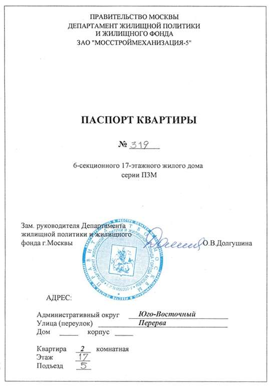 Эталон титульного листа техпаспорта на квартиру и то, что расписано дальше