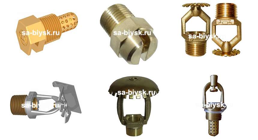 Основными элементами таковой системы, как видно из ее наименования, являются спринклеры. Это обыденные распылители, которые оборудованы термическими замками, которые «открываются» при появлении очага возгорания. Такими замками могут быть плавкие вставки или стеклянные пробирки, заполненные жидкостью. В «спокойном» состоянии замок сдерживает пружину, в конце которой размещена крышка клапана, не дающая воде течь. Как сами распылители, так и его составляющие сделаны из цветных металлов, которые не страшатся коррозии.