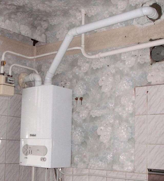 - в подавляющем большинстве высотных жилых домов нет интегрированных дымоходных шахт, только вентиляционные, а к ним подключать котел не допускается. Необходимо будет вывести коаксиальный дымопровод через внешную стенку. Это мероприятие лучше письменно согласовать с соседями, чьи окна окажутся рядом с рассеивателем дыма;