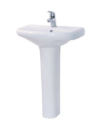 С фиксированной высотойК категории оборудования с фиксированной монтажной высотой относятся раковины с «пьедесталом». Основание может располагаться на напольном покрытии либо ставиться на кирпичное либо бетонное возвышение. Допускается уменьшение габаритов «пьедестала» методом обрезки участка сверху либо снизу, но при резке фаянс трескается и раскалывается. Выполнить осторожный разрез можно лишь на станке (без гарантии свойства выполненной работы).