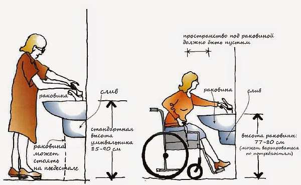 На какой высоте монтировать умывальник в ванной для инвалидов