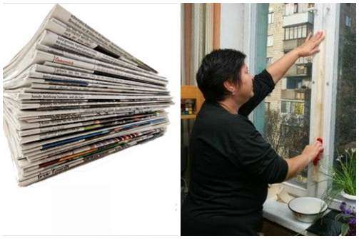 - Бумажные полосы и газеты. Старенькые газеты размочите в воде, а образовавшейся массой заполните пустоты и места меж штапиками и стеклом, и все остальные щели. Часто газеты сворачивали в трубочки, которые потом размачивали в воде и оклеивали ими щели. Все соединения меж стеклами и рамами поверх проклеите полосами бумаги. Для этого растворите хозяйственное мыло до смеси воды, и нанесите раствор на бумажные полосы. После чего стремительно наклейте их к поверхности. Из минусов- с приходом весны наклейки придется отдирать. Вот тут-то и подстерегает основная западня- с бумагой могут отлетать кусочки краски.
