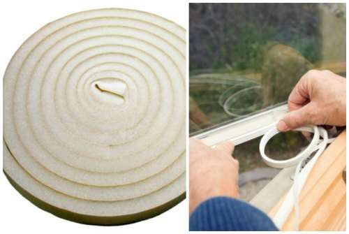 Нужно по периметру створок прилепить поролон, что даст плотности при закрывании окошка. И если ранее в продаже не было самоклеящегося поролона, его прибивали к раме маленькими гвоздями. Данный материал прослужит вам 2-3 года, после этого начнет разрушаться либо терять первоначальную форму. Поверх соединений рамы оклеиваются картонным скотчем.