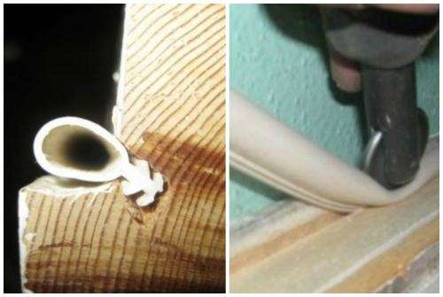 - Паз должен по размеру подходить под уплотнитель. Конкретно он устанавливается последующим. Это может быть и полиуретан, и поролон. Клей использовать не надо, ведь уплотнитель отлично держится за счет утолщений изнутри конструкции.