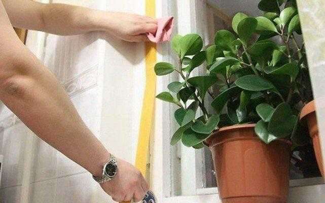 - Кропотливо прогуляйтесь по откосам, рамам и подоконнику обезжиривающим очистителем.