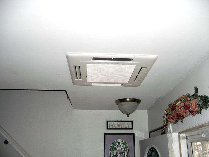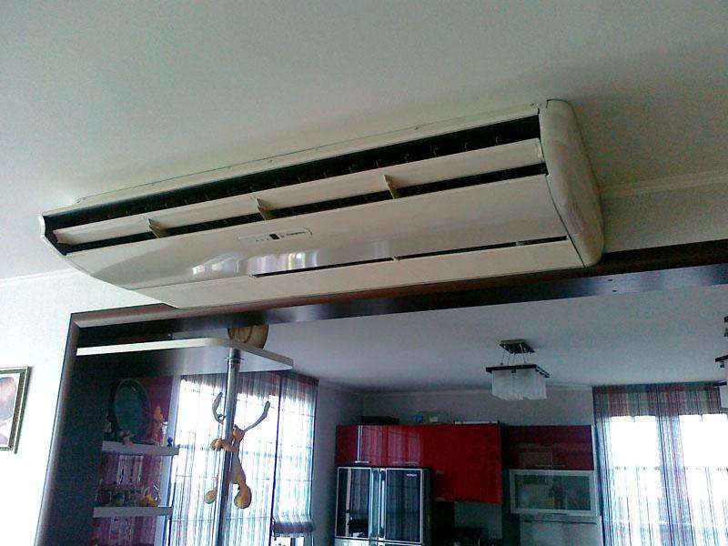 Потолочная модель может устанавливаться в комнатах прямоугольной формы и позволяет обработать маленький объем воздуха. Благодаря особенному конструктивному выполнению такие устройства направляют воздушный поток повдоль потолка либо стенки, обеспечивая равномерное рассредотачивание кондиционируемого воздуха по всему помещению.