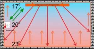 Механизм работы обогревателя состоит в том, что инфракрасное излучение нагревает окружающие прибор предметы, а они, в свою очередь, нагревают и воздух в помещении.