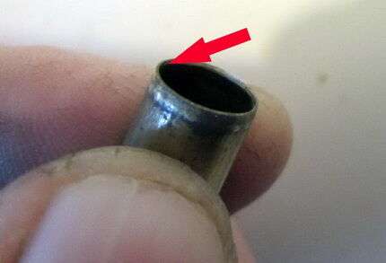 В итоге резки должна получиться деталь с окончанием строго цилиндрической формы, имеющим наименьшую косину реза. С детали непременно снимаем заусенцы, чистим ее внутреннюю поверхность ершиком и обезжириваем. Аналогично обрезаем 2-ой кусок трубы. Берем труборасширитель и с помощью молотка увеличиваем поперечник 2-ой трубы.