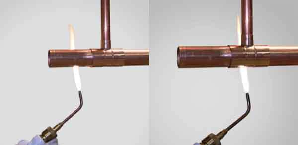 Когда припой начинает расплавляться в момент прикладывания к медной трубе, тепло горелки переводят в область основания «стакана» узла. Этот маневр увеличивает капиллярное действие на втягивание расплавленного припоя по направлению к источнику тепла.