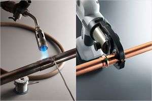 Жесткое соединение употребляется для труб поперечником от 12 до 159 мм. Высокотемпературная пайка употребляется для соединения газовых труб.