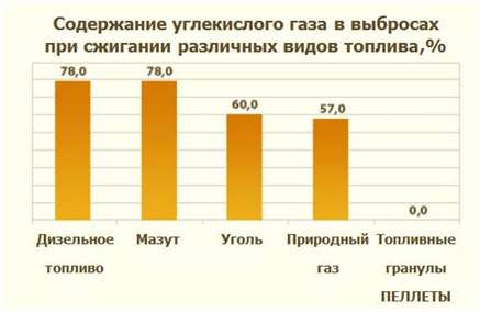 При сгорании пеллет в атмосферу выбрасываются безопасные вещества, участвующие в естественном обмене