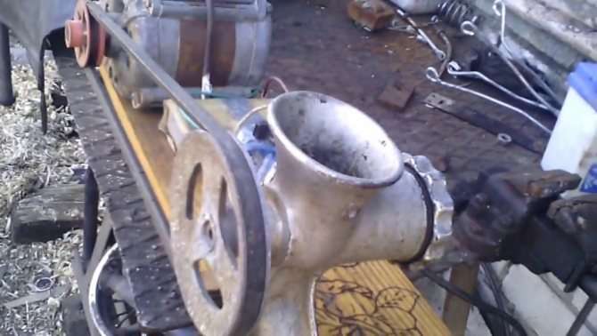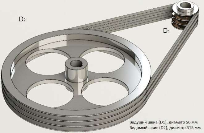 Шкивы необходимо медлительно соединить с движком ременной передачей. Нужно учесть вероятную пробуксовку.