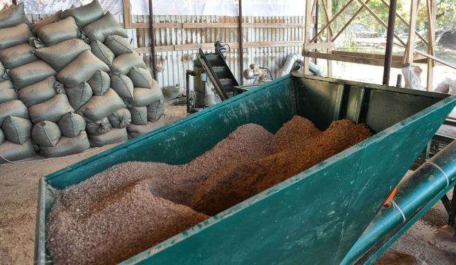 Осуществляется этот процесс при помощи молотилки. Дробление может выполняться пару раз, если с первого раза не удалось достигнуть нужной фракции материала. Дальше по скребковому транспортеру размельченное сырье поступает в смеситель, а потом в сушильный барабан.