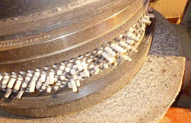 После остывания гранулки становятся жесткими, их уже не так просто разломать. Сейчас пеллеты необходимо просеять, чтоб отделить несформировавшиеся части, пыль и маленький древесный порошок – все это становится предпосылкой возникновения излишней золы на стенах котла.