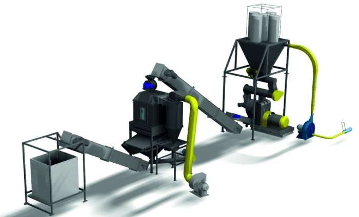 - Если в составе начального сырья содержится много древесных частиц большого размера, то в составе производственной полосы по изготовлению пеллет должна находиться не только лишь молотилка, да и оборудование для сепарации размельченной массы. Эксплуатация таковой производственной полосы также будет связана с завышенными затратами энергии.