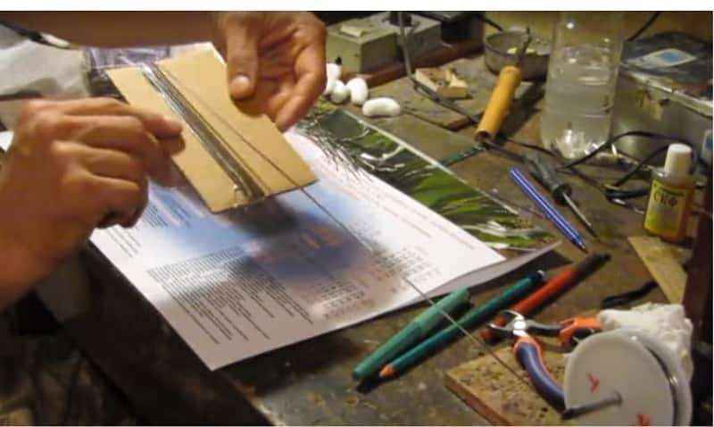 - Обнаженные проводники нарежьте схожими отрезками под лекало, таковой длины, чтоб она вдвое превосходила размер элемента солнечной батареи.