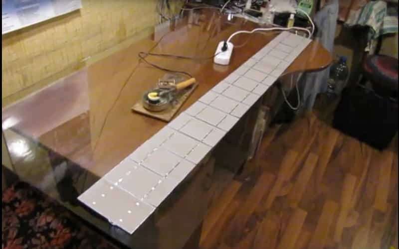 Собирать все элементы нужно на ровненькой поверхности из диэлектрического материала. Исходя из характеристик будущей фотопанели, собирается поочередная цепочка из деталей. И позже набирается параллельная группа из таких цепочек.